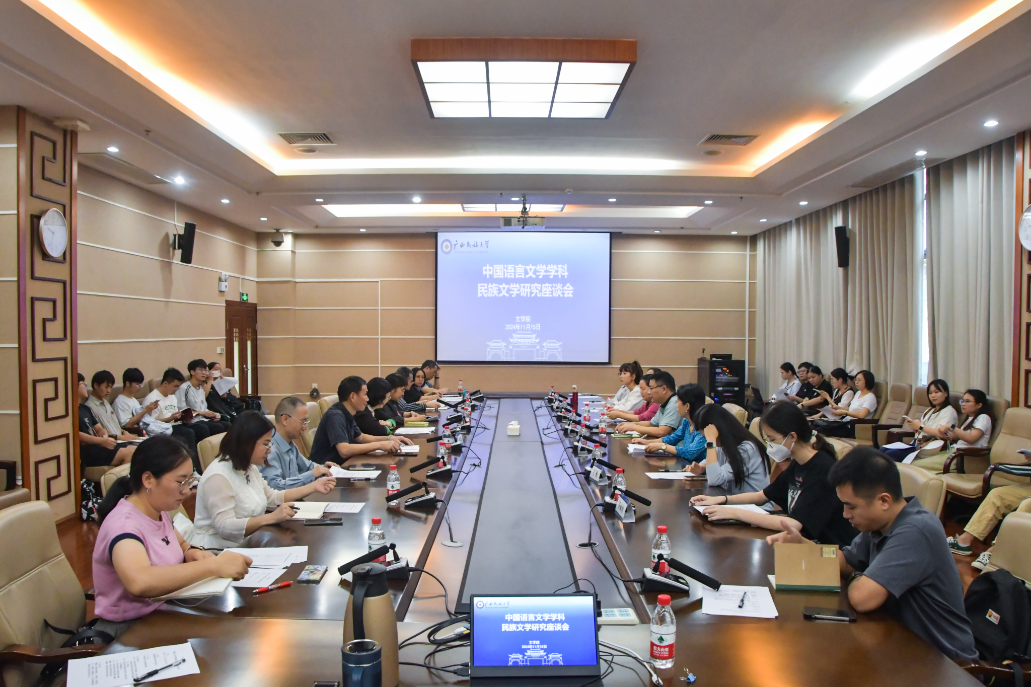 本次座谈会由广西民族大学必威西汉姆联主办,广西高校人文社会科学重点研究基地“广西民族文化保护与传承研究中心”承办,必威西汉姆联师生近60人到场参与汇报交流,为师生们开展民族文学研究提供了新的思路与方向,促进了我校的中国语言文学学科建设。